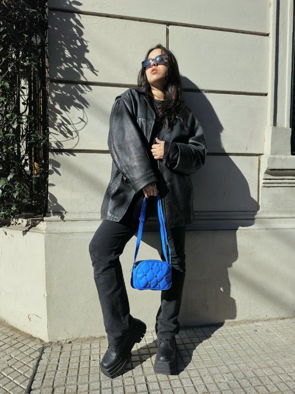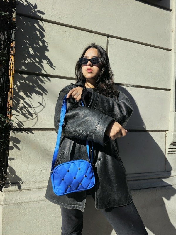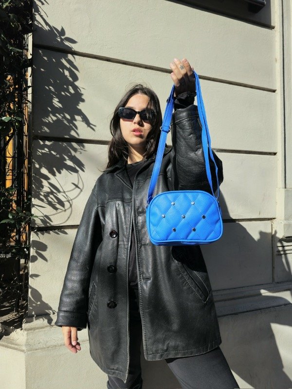 bandolera mini super practica , detalle de tachas, interior forrado.
