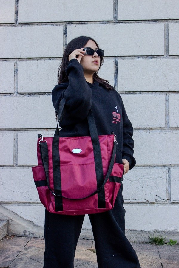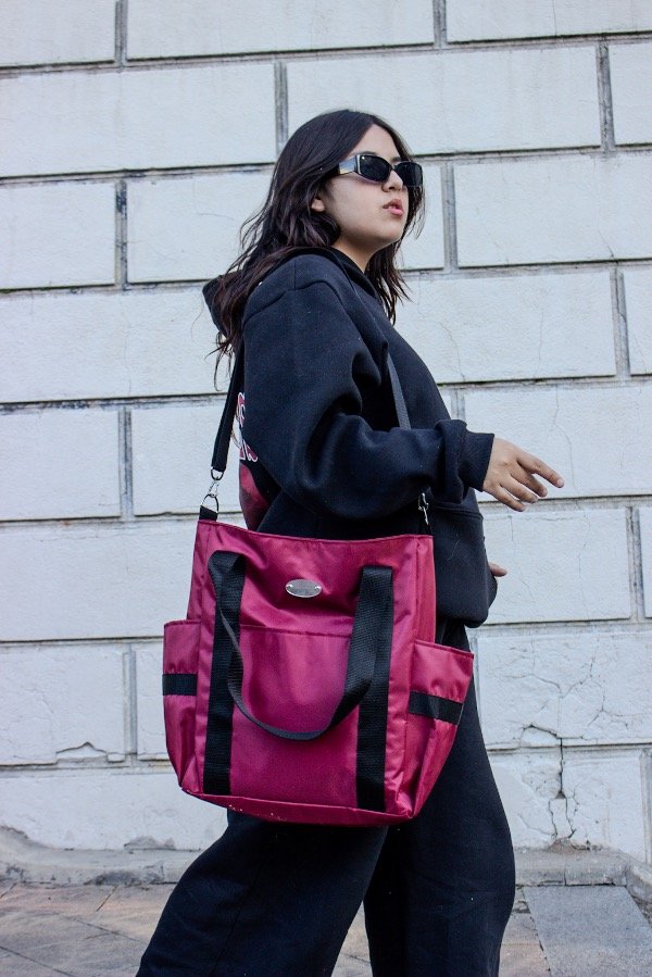 Correa larga regulable y desmontable para usarla cruzada.