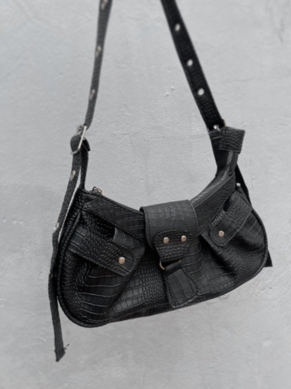 manija de eco cuero regulable para llevar al hombro o en la mano.