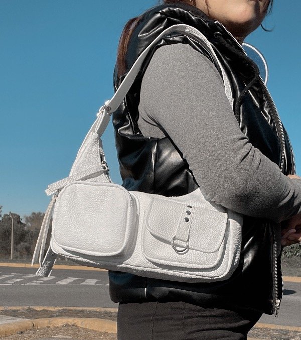 manija de eco cuero regulable para llevar al hombro o en la mano.
