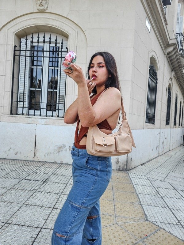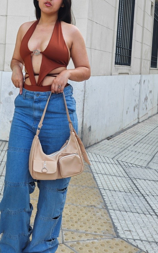 manija de eco cuero regulable para llevar al hombro o en la mano.