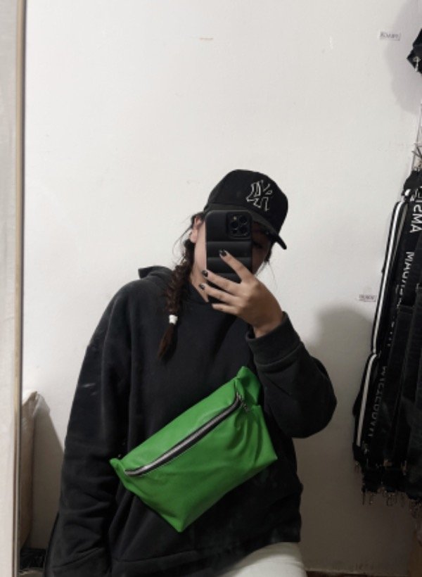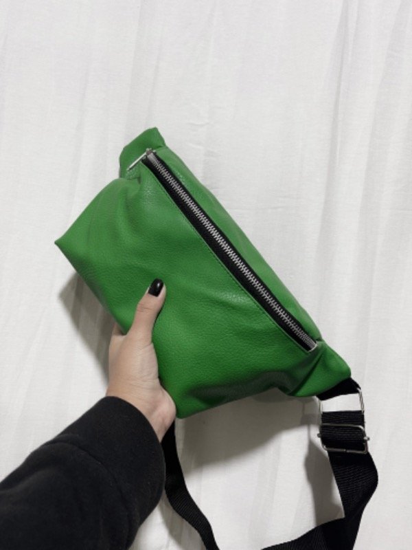 tiene un bolsillo con cierre y su correa es regulable.